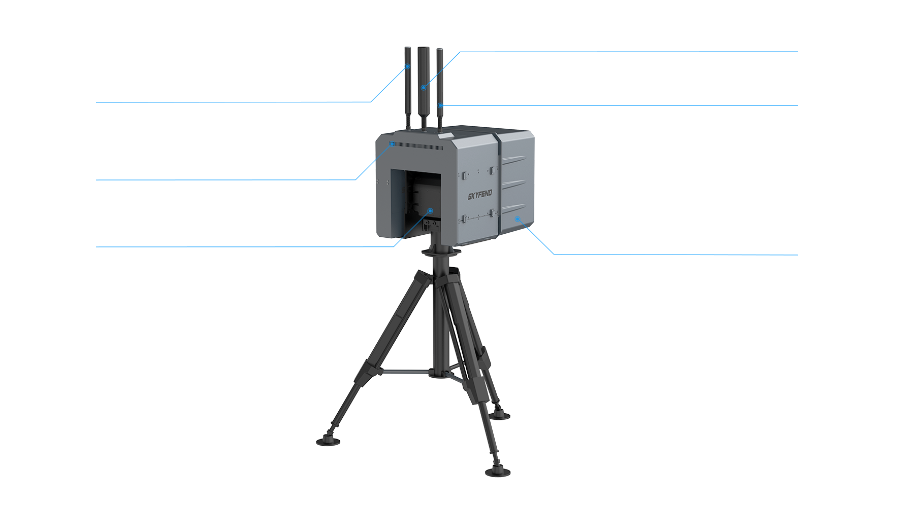 Guided by real-time RF detection, the system directs jamming and GNSS deception actions to effectively suppress drones employing frequency-hopping and spread-spectrum techniques in high-interference environments. Supporting both fixed-site and vehicle-mounted deployments, SRI100 delivers all-weather, multi-mission counter-UAS capability across a wide range of operational scenarios.